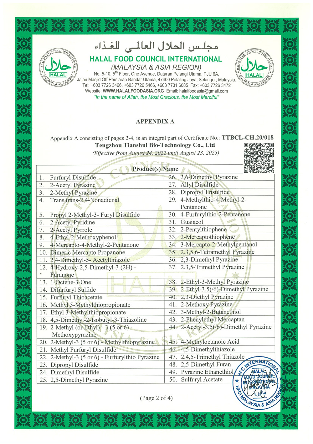 滕州市天水生物科技有限公司成立于2011年9月,是目前國內雜環類合成食品香料、日化香料和醫藥中間體生產經營的綜合性企業。坐落于山東省滕州市生物醫藥產業基地,總投資5000余萬元,占地面積約30000平方米,員工百余人。公司先后被評為高新技術企業、專精特新中小企業、科技型中小企業,建有市級重點實驗室1處,并先后獲得ISO9001質量體系認證、ISO22000食品安全體系認證、kosher認證和Halal認證。是香精香料及食品配料協會會員單位及滕州市中小企業協會理事單位。